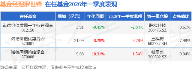 证券之星消息,日前诺德价值优势混合基金公布一季报,2026年一季度最新规模21.09亿元,季度净值涨幅为3.78%。