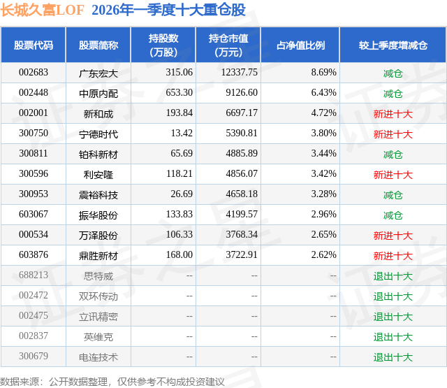 从基金规模来看,长城久富LOF基金2026年一季度公布的基金规模为10.61亿元,较上一期规模15.16亿元变化了-4.56亿元,环比变化了-30.06%。该基金最新一期资产配置为:股票占净值比75.16%,无债券类资产,现金占净值比25.11%。从基金持仓来看,该基金当季前十大股票仓位达42.01%,第一大重仓股为广东宏大(002683),持仓占比为8.69%。