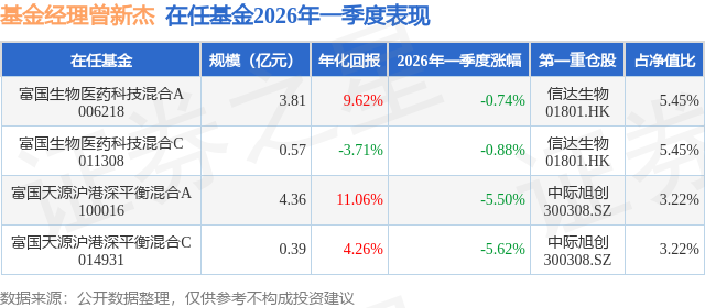 证券之星消息,日前富国天源沪港深平衡混合A基金公布一季报,2026年一季度最新规模4.36亿元,季度净值涨幅为-5.5%。