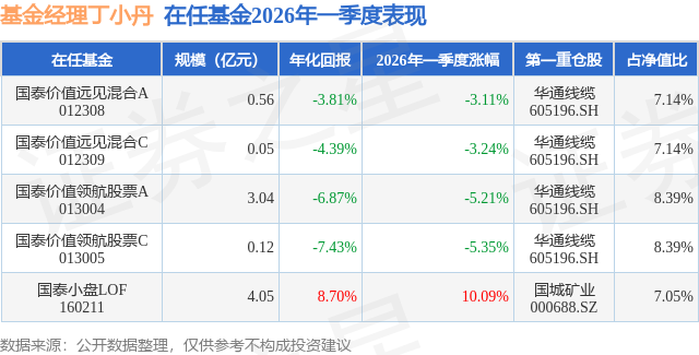 证券之星消息,日前国泰小盘LOF基金公布一季报,2026年一季度最新规模4.05亿元,季度净值涨幅为10.09%。