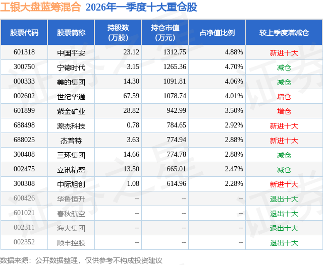 证券之星消息,日前工银大盘蓝筹混合基金公布一季报,2026年一季度最新规模2.69亿元,季度净值涨幅为3.01%。