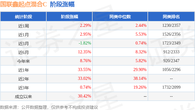 从业绩表现来看,国联鑫起点混合C基金过去一年净值涨幅为33.55%,在同类基金中排名1056/2296,同类基金过去一年净值涨幅中位数为29.9%。而基金过去一年的最大回撤为-15.28%,成立以来的最大回撤为-42.45%。