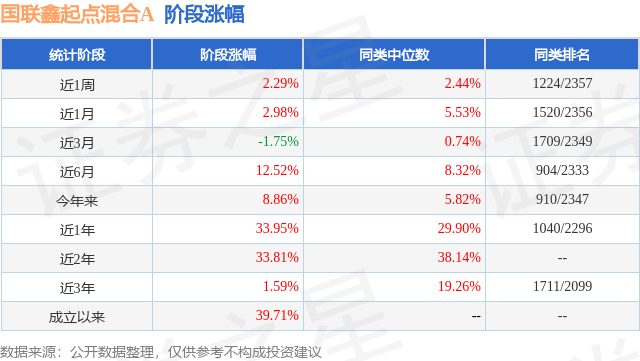 从业绩表现来看,国联鑫起点混合A基金过去一年净值涨幅为33.95%,在同类基金中排名1040/2296,同类基金过去一年净值涨幅中位数为29.9%。而基金过去一年的最大回撤为-15.26%,成立以来的最大回撤为-41.99%。