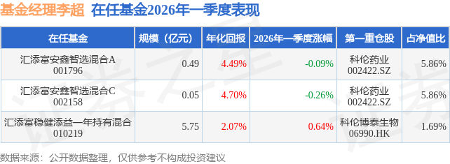 证券之星消息,日前汇添富安鑫智选混合C基金公布一季报,2026年一季度最新规模0.05亿元,季度净值涨幅为-0.26%。
