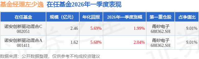 证券之星消息,日前诺安创新驱动混合C基金公布一季报,2026年一季度最新规模2.46亿元,季度净值涨幅为1.99%。