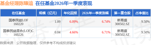 证券之星消息,日前国泰民益LOF基金公布一季报,2026年一季度最新规模1.09亿元,季度净值涨幅为6.74%。