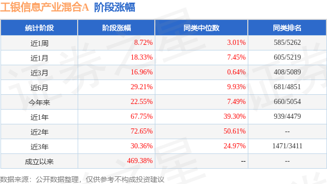 从业绩表现来看,工银信息产业混合A基金过去一年净值涨幅为67.75%,在同类基金中排名939/4479,同类基金过去一年净值涨幅中位数为39.3%。而基金过去一年的最大回撤为-12.47%,成立以来的最大回撤为-69.53%。