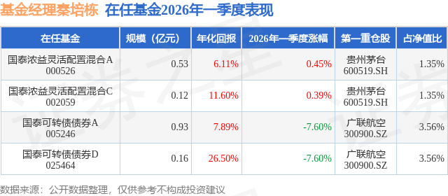 国泰浓益灵活配置混合A现任基金经理为秦培栋 郑双明,本季度增聘基金经理秦培栋、郑双明,近期离任的基金经理为茅利伟。其中在任基金经理秦培栋已从业0年又227天,2025年10月13日正式接手管理国泰浓益灵活配置混合A,任职期间累计回报为7.24%。目前还管理着4只基金产品(包括A类和C类),其中本季度表现最佳的基金为国泰浓益灵活配置混合A(000526),季度净值涨幅为0.45%。