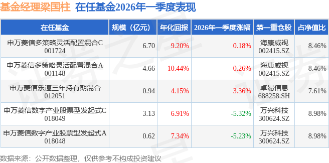 证券之星消息,日前申万菱信多策略灵活配置混合A基金公布一季报,2026年一季度最新规模4.66亿元,季度净值涨幅为0.26%。