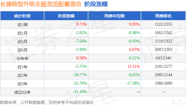 从业绩表现来看,长盛转型升级主题灵活配置混合基金过去一年净值涨幅为38.35%,在同类基金中排名927/2296,同类基金过去一年净值涨幅中位数为29.9%。而基金过去一年的最大回撤为-18.38%,成立以来的最大回撤为-64.53%。