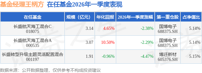 证券之星消息,日前长盛转型升级主题灵活配置混合基金公布一季报,2026年一季度最新规模1.91亿元,季度净值涨幅为-4.47%。