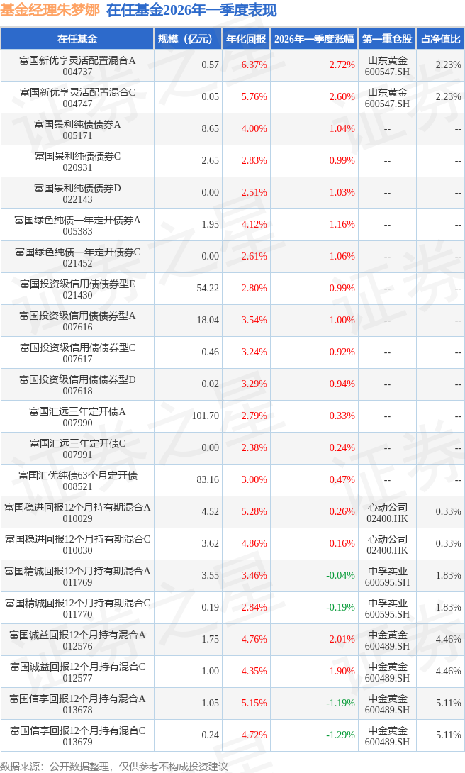 证券之星消息,日前富国精诚回报12个月持有期混合C基金公布一季报,2026年一季度最新规模0.19亿元,季度净值涨幅为-0.19%。