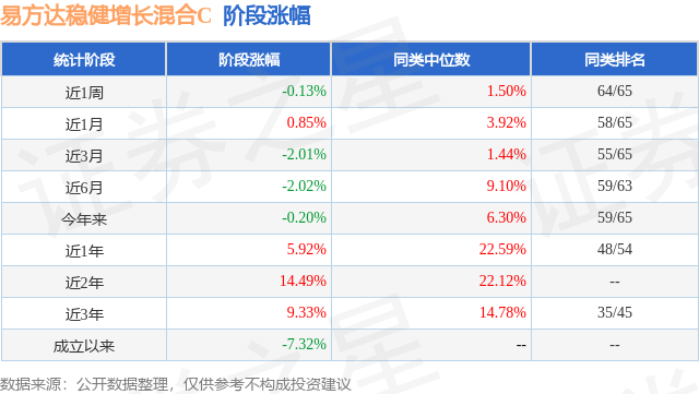 从业绩表现来看,易方达稳健增长混合C基金过去一年净值涨幅为5.92%,在同类基金中排名48/54,同类基金过去一年净值涨幅中位数为22.59%。而基金过去一年的最大回撤为-6.65%,成立以来的最大回撤为-25.66%。