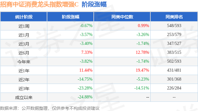 从业绩表现来看,招商中证消费龙头指数增强C基金过去一年净值涨幅为0.7%,在同类基金中排名644/651,同类基金过去一年净值涨幅中位数为44.44%。而基金过去一年的最大回撤为-13.1%,成立以来的最大回撤为-39.53%。