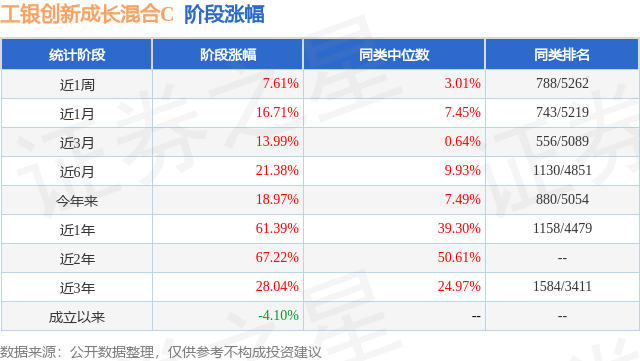 从业绩表现来看,工银创新成长混合C基金过去一年净值涨幅为61.39%,在同类基金中排名1158/4479,同类基金过去一年净值涨幅中位数为39.3%。而基金过去一年的最大回撤为-11.98%,成立以来的最大回撤为-50.84%。