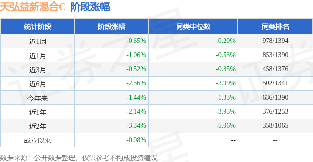 证券之星消息,日前天弘益新混合C基金公布一季报,2026年一季度最新规模0.39亿元,季度净值涨幅为-0.39%。
