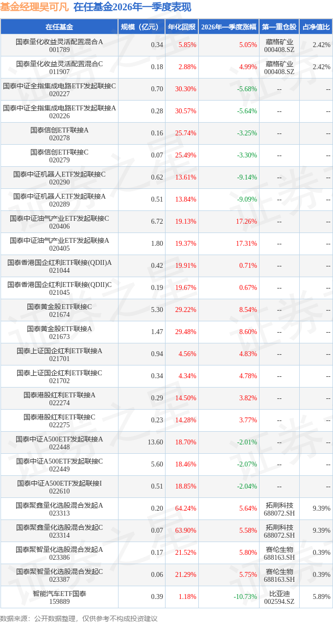 证券之星消息,日前智能汽车ETF国泰基金公布一季报,2026年一季度最新规模0.39亿元,季度净值涨幅为-10.73%。