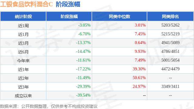 从业绩表现来看,工银食品饮料混合C基金过去一年净值涨幅为-17.22%,在同类基金中排名4472/4479,同类基金过去一年净值涨幅中位数为39.3%。而基金过去一年的最大回撤为-18.82%,成立以来的最大回撤为-49.18%。