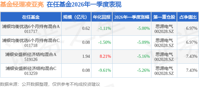 证券之星消息,日前浦银安盛新经济结构混合C基金公布一季报,2026年一季度最新规模0.08亿元,季度净值涨幅为-5.26%。