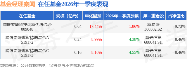 证券之星消息,日前浦银安盛科技创新优选混合基金公布一季报,2026年一季度最新规模0.64亿元,季度净值涨幅为1.86%。