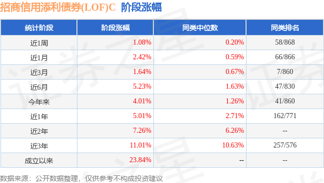 证券之星消息,日前招商信用添利债券(LOF)C基金公布一季报,2026年一季度最新规模0.72亿元,季度净值涨幅为1.54%。
