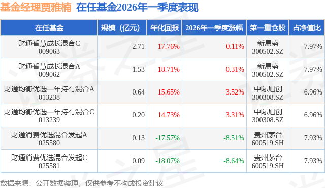 证券之星消息,日前财通智慧成长混合A基金公布一季报,2026年一季度最新规模1.53亿元,季度净值涨幅为0.31%。