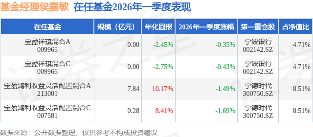 证券之星消息,日前宝盈鸿利收益灵活配置混合C基金公布一季报,2026年一季度最新规模0.28亿元,季度净值涨幅为-1.69%。