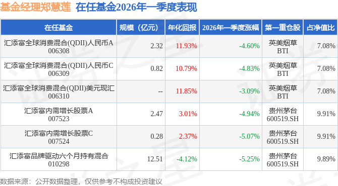 证券之星消息,日前汇添富内需增长股票C基金公布一季报,2026年一季度最新规模0.28亿元,季度净值涨幅为-5.07%。