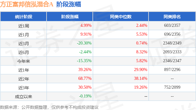 从业绩表现来看,方正富邦信泓混合A基金过去一年净值涨幅为39.26%,在同类基金中排名897/2296,同类基金过去一年净值涨幅中位数为29.9%。而基金过去一年的最大回撤为-31.33%,成立以来的最大回撤为-69.76%。