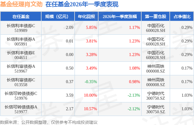 证券之星消息,日前长信利丰债券A基金公布一季报,2026年一季度最新规模0.01亿元,季度净值涨幅为1.23%。