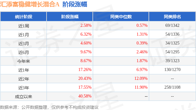 从业绩表现来看,汇添富稳健增长混合A基金过去一年净值涨幅为17.26%,在同类基金中排名130/1270,同类基金过去一年净值涨幅中位数为6.97%。而基金过去一年的最大回撤为-4.17%,成立以来的最大回撤为-17.44%。