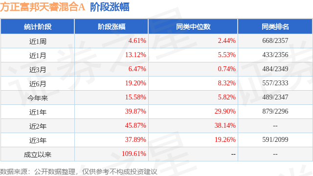 从业绩表现来看,方正富邦天睿混合A基金过去一年净值涨幅为39.87%,在同类基金中排名879/2296,同类基金过去一年净值涨幅中位数为29.9%。而基金过去一年的最大回撤为-12.15%,成立以来的最大回撤为-38.63%。