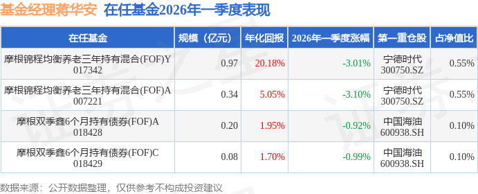 证券之星消息,日前摩根锦程均衡养老三年持有混合(FOF)A基金公布一季报,2026年一季度最新规模0.34亿元,季度净值涨幅为-3.1%。