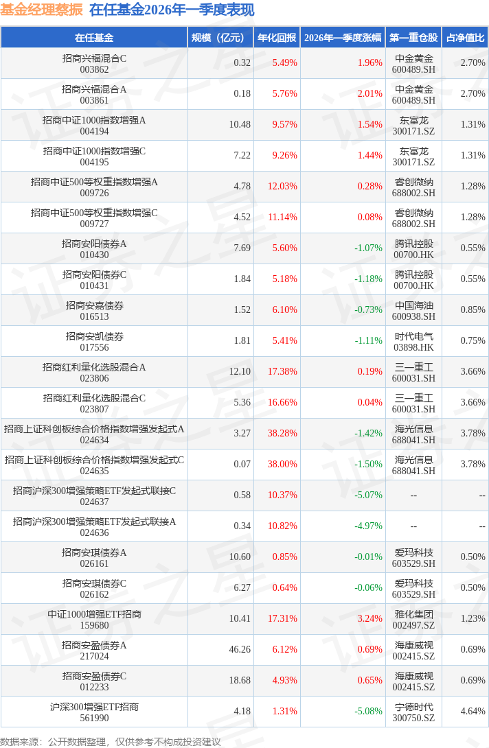 证券之星消息,日前招商中证500等权重指数增强A基金公布一季报,2026年一季度最新规模4.78亿元,季度净值涨幅为0.28%。