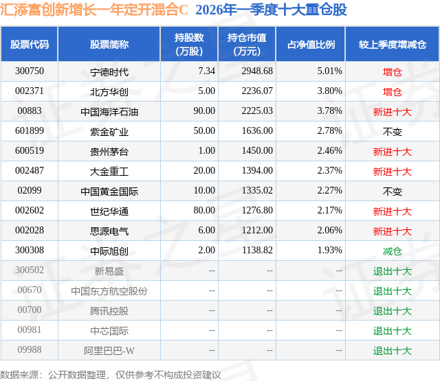 证券之星消息,日前汇添富创新增长一年定开混合C基金公布一季报,2026年一季度最新规模0.69亿元,季度净值涨幅为-6.45%。