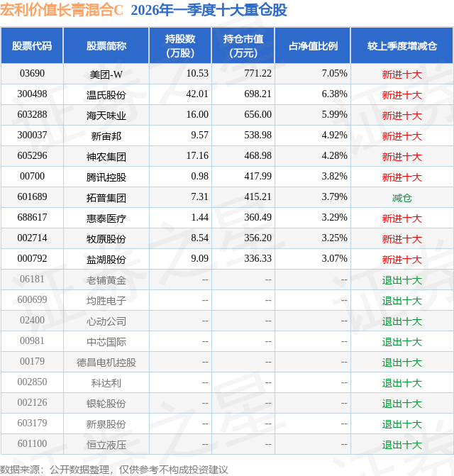 证券之星消息,日前宏利价值长青混合C基金公布一季报,2026年一季度最新规模0.07亿元,季度净值涨幅为-11.54%。