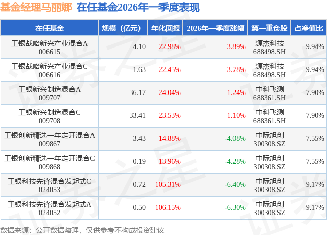 证券之星消息,日前工银新兴制造混合A基金公布一季报,2026年一季度最新规模36.17亿元,季度净值涨幅为1.24%。