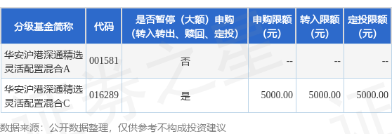 证券之星消息,4月27日华安基金管理有限公司发布《关于华安沪港深通精选灵活配置混合型证券投资基金暂停C类份额大额申购、大额转换转入及大额定期定额投资的公告》。公告中提示,为了保证基金的平稳运作,保护基金持有人利益,本基金管理人决定自2026年4月30日起暂停本基金C类份额的大额申购、大额转换转入及大额定期定额投资业务,自2026年4月30日起华安沪港深通精选灵活配置混合型证券投资基金暂停C类份额大额申购、大额转换转入及大额定期定额投资,申购、转换转入上限金额为0.5万元,下属分级基金调整明细如下:
