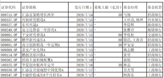 下周值得关注的有嘉实基金归凯管理的嘉实远见精选两年持有期、博时王俊管理的博时价值臻选两年持有、富国李元博管理的富国创新趋势、银华焦巍管理的银华富利精选,以及鹏扬基金总经理杨爱斌亲自管理的鹏扬景沣六个月持有(偏债混合)。其中不少产品有规模上限,有些产品是封闭式产品,投资者关注时需要注意和自己资金使用周期相适应。