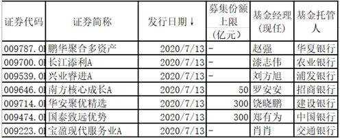 7月份新基金发行30只,募集1205.41亿元,其中股票方向基金新发行10只,募集760亿元;今年以来新基金发行710只,募集11853.76,其中股票方向基金新发行314只,募集6687.59亿元。(根据银河证券基金研究中心关于公募基金投资方向的分类定义,股票方向基金是指业绩基准中的股票比例值大于或者等于60%的,包括QDII股票基金、港股通股票基金等。)