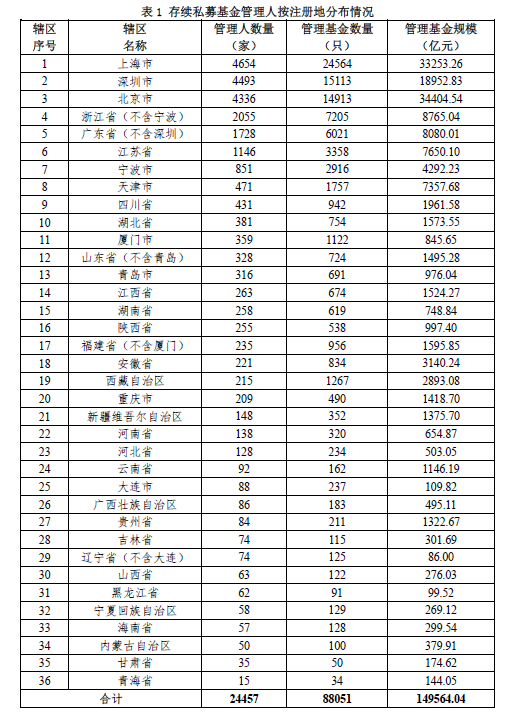 在私募基金头部效应显著的背景下,区域集中度亦在加剧。