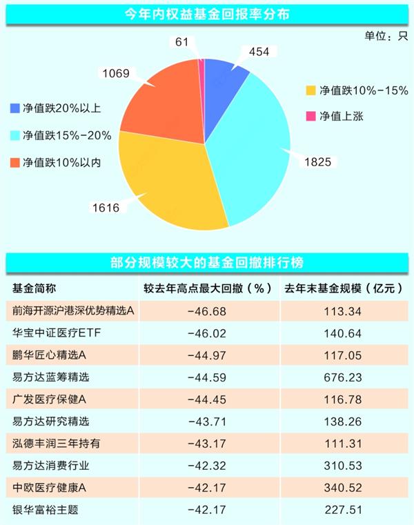 部分规模较大的基金大幅回撤,引发市场广泛讨论。数据显示,去年年报规模超百亿元的基金中,有50多只基金净值回撤逾30%。其中不乏一些知名基金,包括中欧医疗、易方达蓝筹精选、景顺长城新兴成长等。