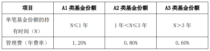 嘉实创新动力的核心让利方式就是随着持有时间的增加而降低管理费率。其根据投资者持有时间不同,分设A1、A2、A3三类不同份额,持有时间越长,管理费率越低。具体看来,初始买入A1份额,确认后第一年管理费率为1.2%/年;持有满1年后,自动升级为A2份额,后续管理费率打66折,降至0.8%/年;持有满3年后,自动升级为A3份额,后续管理费率打五折,变成0.6%/年。这一降费机制除与持有时间挂钩外,没有其他前提条件,只要持有满一定时间,无论盈利多少、规模多少,都会降低费率,能有效帮助投资者在长期投资中节省成本。
