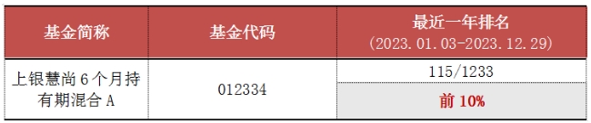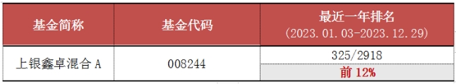 2023年,是上银基金收获、成长的一年。在整体市场波动较大的情况下,上银基金始终秉承“受人之托、代客理财”的资产管理本源,保持对市场的敬畏之心,坚守投资者利益优先原则,持续锤炼方法论与洞察力,点滴积累,取得了亮眼的产品业绩!