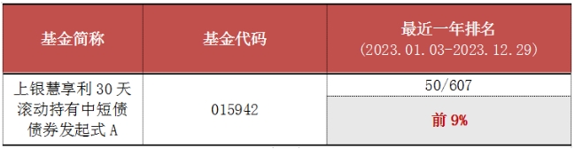 固收类基金、纯债类基金、权益类基金排行榜数据来源于来源于海通证券《基金公司权益及固定收益类资产分类评分排行榜》、《基金公司权益及固定收益类资产业绩排行榜》,近7年时间区间为2017.1.3-2023.12.29,近5年数据时间区间2019.1.2-2023.12.29,发布日期为2023.12.31。产品业绩排名、评级数据来源:海通证券,《基金业绩评价报告》,数据截止时间:2023.12.29,报告发布时间:2023.12.30。上银聚鸿益三个月定开债券、上银聚永益一年定开债券、上银慧享利30天滚动持有中短债债券发起式、上银聚顺益一年定开债券发起式、上银慧尚6个月持有期混合均设置有封闭期、滚动运作期或最短持有期,基金份额持有人只能在开放期赎回基金份额,在封闭期、滚动运作期及持有期内,基金份额持有人将面临因不能赎回基金而出现的流动性风险。基金开放期的具体时间按基金合同约定以基金管理人届时公告为准。基金管理人承诺以诚实信用、勤勉尽责的原则管理和运用基金财产,但不保证基金本金不受损失,不保证基金一定盈利,也不保证最低收益。投资人购买基金时应详细阅读基金的基金合同、招募说明书和基金产品资料概要等法律文件,全面了解产品风险,在了解产品情况及销售适当性意见的基础上,根据自身的投资目标、投资期限以及风险承受能力等因素,理性判断并谨慎做出投资决策。