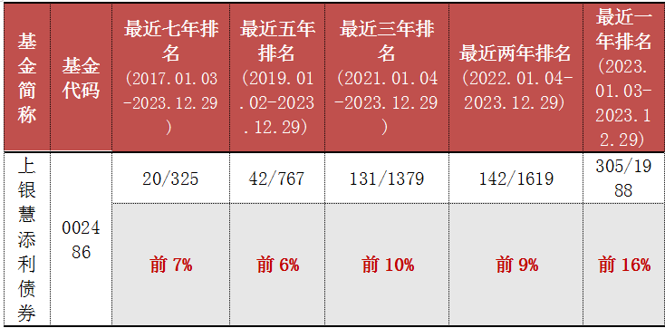 当前,上银基金已打造出多只短中长期业绩居于同类前20%的拳头债基,其中,旗下上银慧添利债券获海通证券5年期5星评级、上银慧佳盈债券获海通证券3年期5星评级。