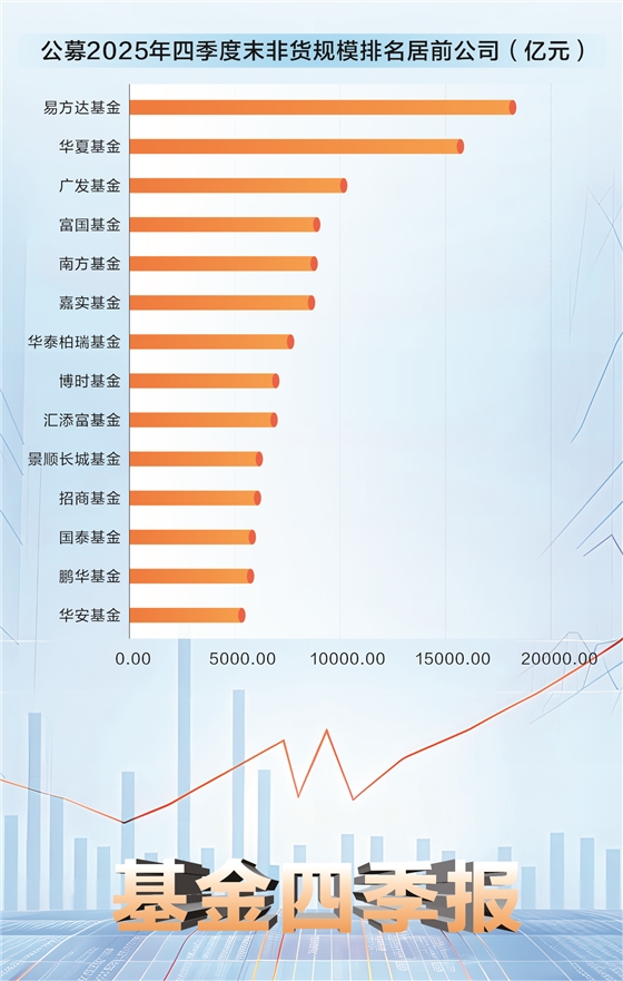 基金、华夏基金和广发基金。继华夏基金非货规模在2024年突破万亿元后,广发基金非货规模在2025年四季度历史首次超过万亿元,而华夏基金非货规模与易方达基金的非货规模差距依旧维持在2000亿元以上。
