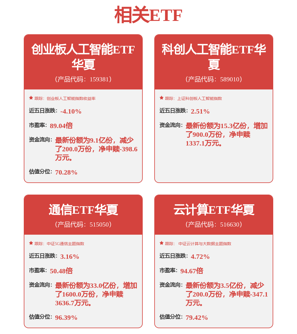 算力ETF:通信ETF华夏(515050)、创业板人工智能ETF华夏(159381)【同类费率最低】