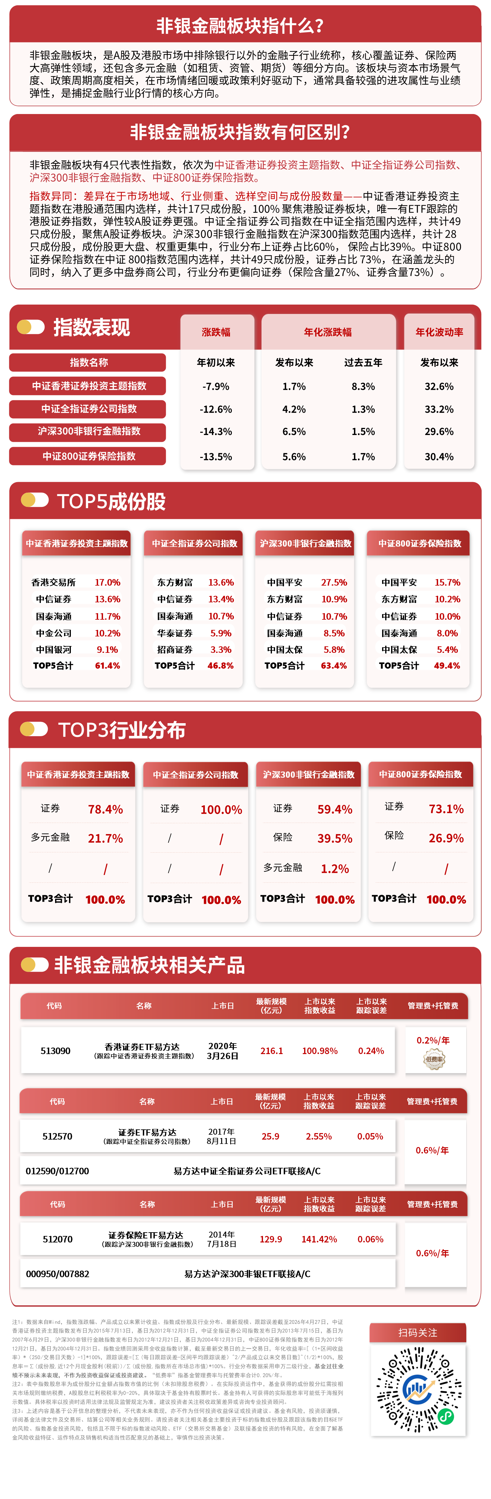 4月28日,市场震荡回调,非银金融板块逆势活跃,截至收盘,中证全指证券公司指数、香港证券指数均上涨1.2%,沪深300非银行金融指数、中证800证券保险指数上涨0.9%。相关ETF中,证券ETF易方达(512570,联接基金A/C:012590/012700)此前已连续11个交易日获资金净流入。